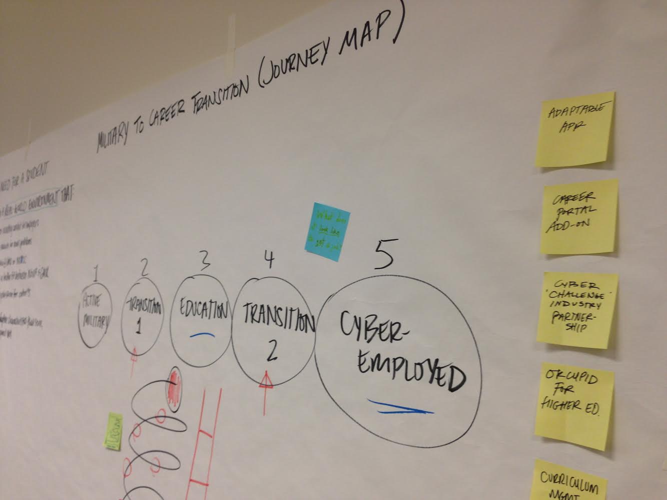 From 2013-2014 I served as the Challenge Lead for the Education Design Lab’s Cybersecurity Careers Challenge. This work involved designing and conducting a number of ethnographic research interviews, facilitation of program strategy sessions and co-creation workshops, service blueprinting, customer journey mapping, and rapid prototyping.