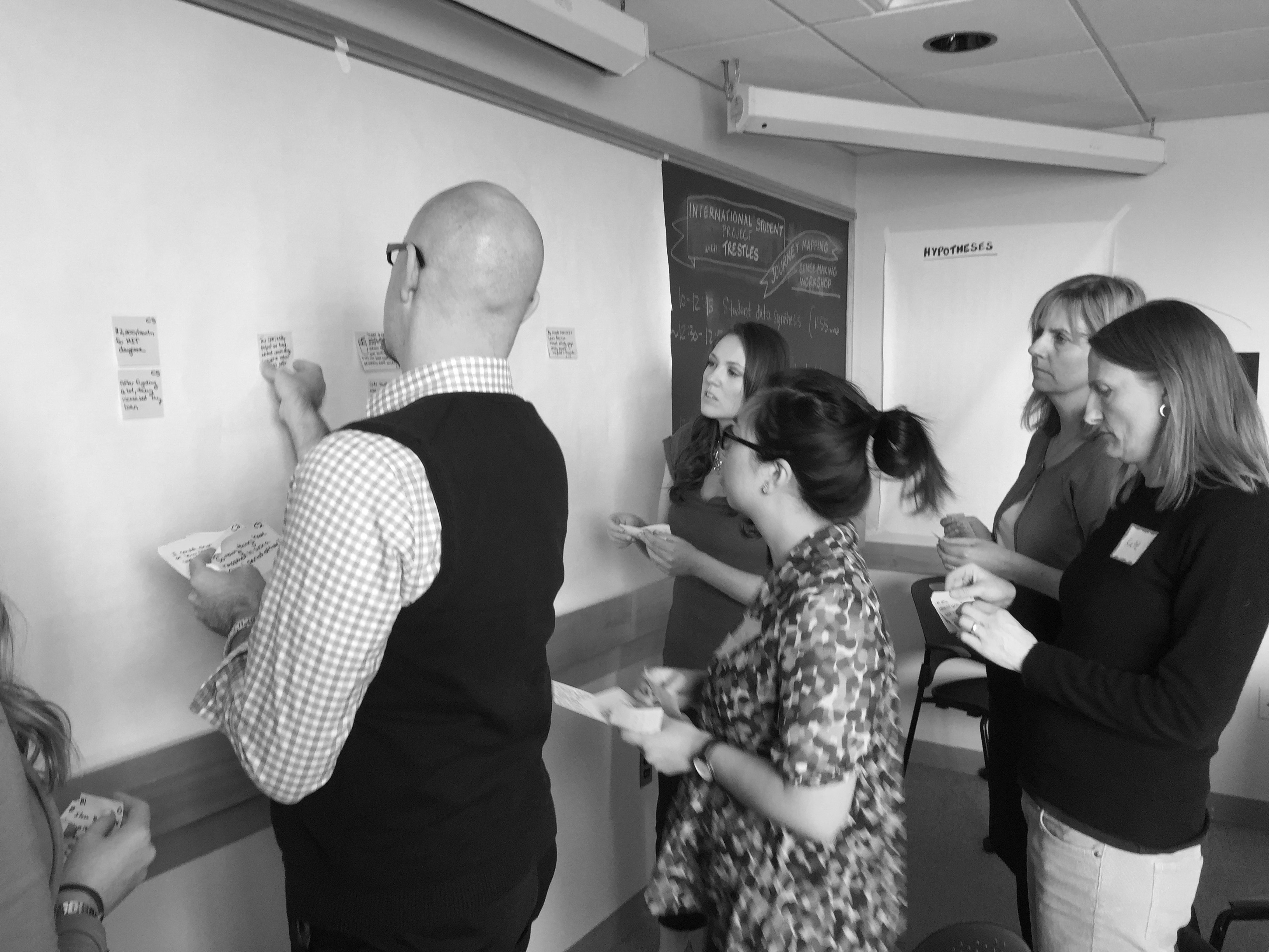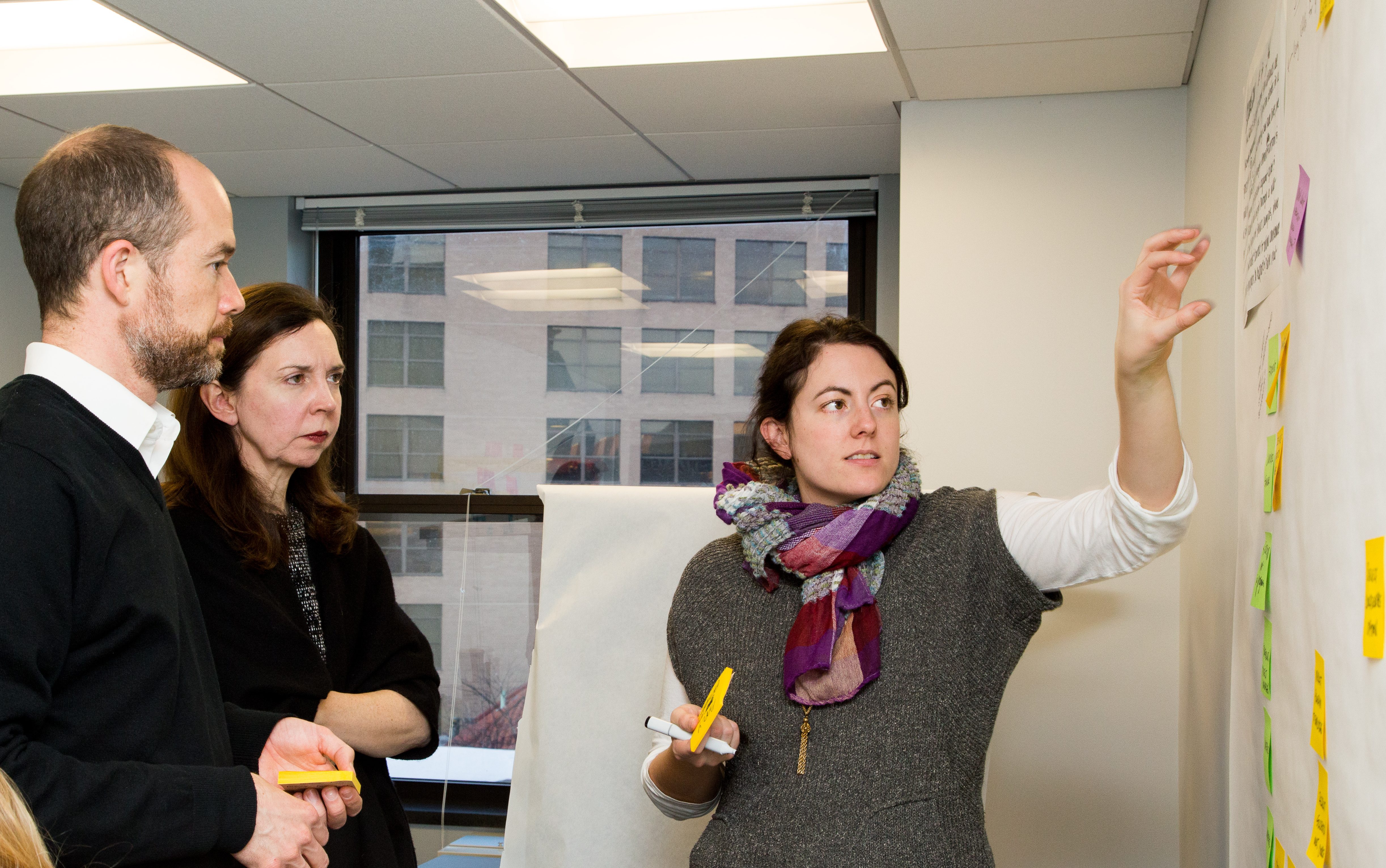 In 2015, I led a customer journey mapping project with MIT Sloan School of Management. The project involved four key components: a Kickoff Workshop to gather context and build institution-wide momentum for the work, a two week Research Intensive whereby I taught a team of students design research methods and oversaw an ethnographic study that they conducted at the university, data modeling work by Trestles that involved an on-site Synthesis Workshop with a cross-functional stakeholder group and the iterative development and design of customer personas and customer journey maps visualizing high-level findings from the research, and a post-research Report Out session whereby we presented our findings to a group of 35 administrators.